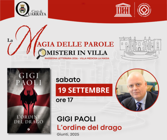 Terzo appuntamento: sabato 19 settembre ore 17, Gigi Paoli presenta L'ordine del drago (Giunti, 2025).